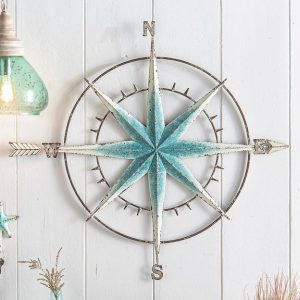 Black Forest Décor – Blue Nautical Compass Wall Art – Coastal Metal Wall Décor – 36 3/4″W x 1 1/3″D x 33 3/5″H