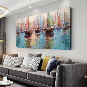 Colorful Boats on Water Oil Painting Style Wall Art Decor Artwork (30×60 Inches)