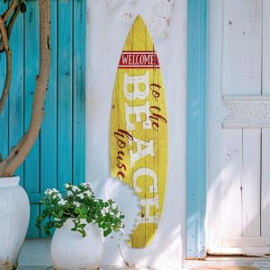 Beach House Shark Bite Wood Surfboard Plaque Wall Art Indoor Decor Sign Beach Themed Plank for Tiki Bar