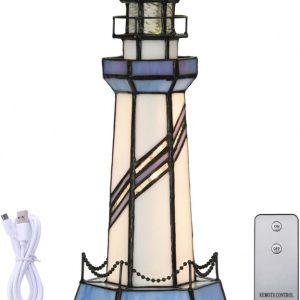 Lighthouse Tiffany Style-Stained Glass Accent Table Lamp Night Light for Home Decoration (5.5×5.5×15, Blue)
