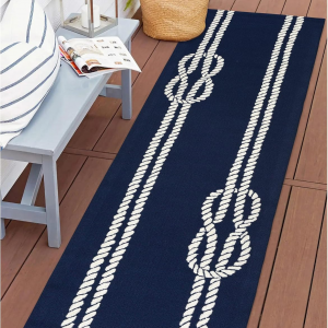 CAPRI Indoor/Outdoor Handmade Synthetic Blend Durable Area Rug – Traditional Stripe Coastal Beach Decorative (Ropes Navy) (2′ X 8′)