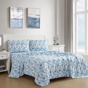 Coastal Print Microfiber King Size Sheet Set, Soft, Comfy, 12″ Deep Pockets, King, Nautical Turtles
