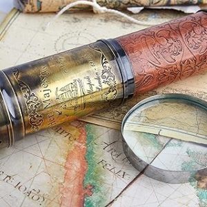 Handcrafted Telescope | Half Leather Carving | 20 Inches | Functional Vintage Replica Brass Nautical Antique Spyglass Telescope