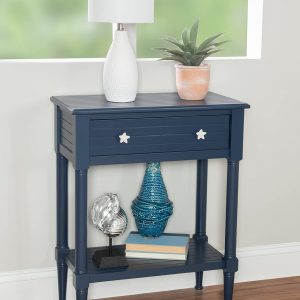 Linon Raleigh Navy Accent Table with Storage and Whimsical Starfish Drawer Pulls, 30.25″ Tall