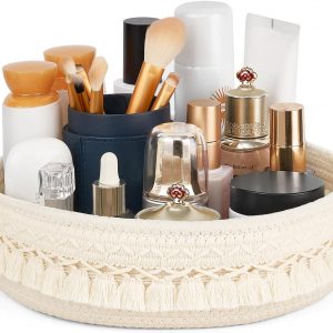 Mkono Makeup Perfume Holder Organizer Macrame Decorative Woven Rope Basket Boho Decor Cosmetics Desk Storage Baskets for Dresser Skin Care Lotions Essential Oils Dorm Room Essentials