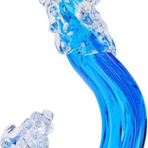 LCCCK Blue Glass Beach House Decor, Hand Blown Ocean Wave Decorate, Tall Blue Glass Sculpture Home Decor, Ocean Wave Fused Art Figurines, for Sea Art Beach Coastal Nautical Office Surfers Gifts
