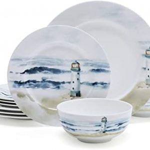 Mikasa Seaside Coastal Bone China Lightweight Chip Resistant 12 Piece Dinnerware Set, Service for 4