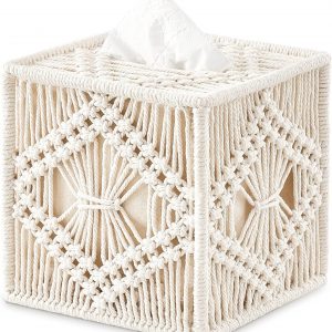 Mkono Tissue Box Cover Macrame Square Open-Bottom Tissue Box Holder Boho Decor Tissue Organizer Bohemian Handmade Woven Tissue Cube Box for Bathroom Bedroom Dresser Living Room Office Dorm