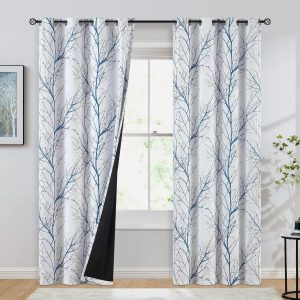 FMFUNCTEX 100% Blackout Curtains for Living Room Bedroom, Curtains 96 Inches Long Blue Grey Tree Branch Print Window Curtain Drapes, Thermal Insulated Farmhouse Curtains, Grommet Top 2 Panels