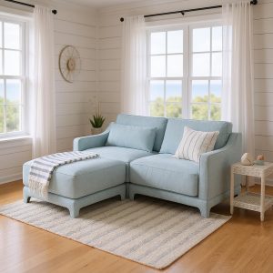Homy Casa Modular Chenille Sofa Set – 2-4 Seat Convertible Sectional Couch with Deep Cushions and Lumbar Pillows for Living Room, Coastal, Farmhouse and Modern Home Décor (Blue,2 Seater + 1 Ottoman)