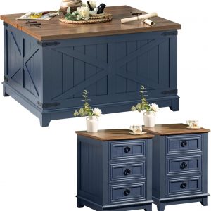 Farmhouse Coffee Table Set of 3, Furniture Set, Coffee Table with Hidden Storage Organizer and Nightsand 3-Piece Set, Large Country Natural Center Table Set for Living Room,Office, Home