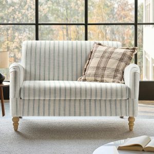 HULALA HOME 50.5″ Loveseat Sofa with Stripe Pattern, 2 Seater Farmhouse Sofa with Rolled Wide Armrests and Rubber Wood Legs, Comfy Upholstered Small Couch for Living Room Bedroom, Blue