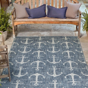 Outdoor Coastal Collection Area Rug – Ahoy (4′ 1″ X 6′ 1″ Rectangle, Blue/ Ivory)