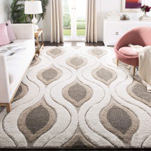 SAFAVIEH Florida Shag Collection Area Rug – 8’6″ x 12′, Cream & Smoke, Modern Ogee Design, Non-Shedding & Easy Care, 1.2-inch Thick Ideal for High Traffic Areas in Living Room, Bedroom (SG461-1179)