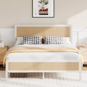 Rattan Bed Frame Queen, Metal Platform Bed Frame Queen Size with Headboard, Boho Queen Bed Frame with Strong Metal Slats Support, No Box Spring Needed, Noise-Free, Easily Assemble, White Visit the CHABUILDREARK Store