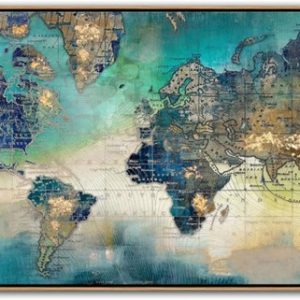 Large World Map Canvas Prints Framed Wall Art for Living Room Office 24×48 Green World Map Picture Artwork Decor for Home Decoration (With Solid Wood Dark Framed)