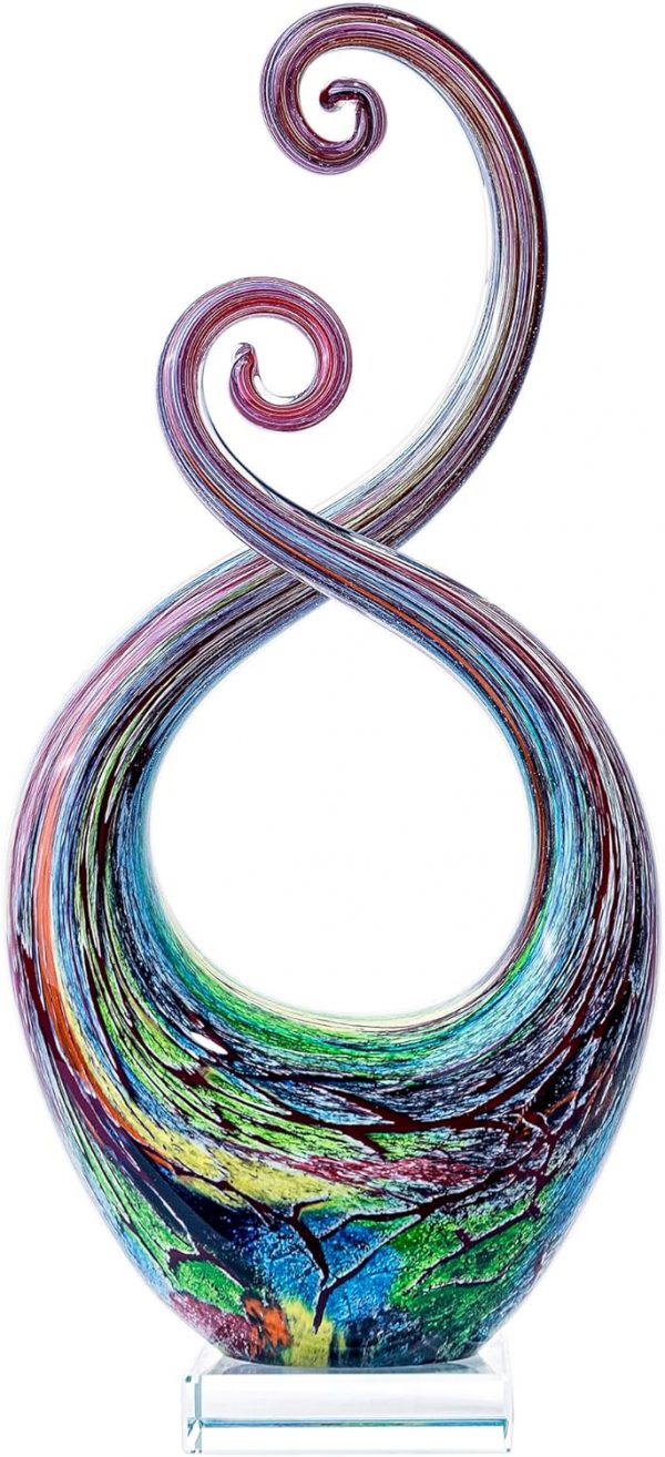 14″ Tall Hand Blown Glass Abstract Sculpture with Base | Outdoor-Ready Handcrafted Glass Decor for Patio, Garden, Home & Office Display