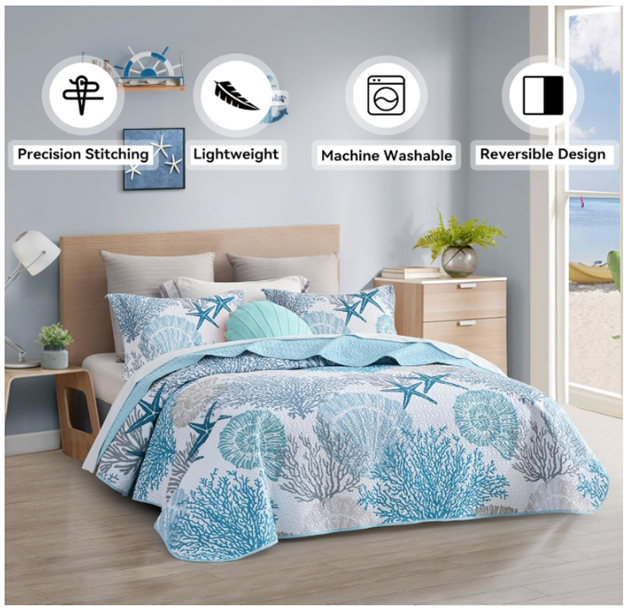 - Premium Material: Our coastal quilt sets are made of 100% high-quality microfiber polyester fabric, the filling is 100% cotton, super soft, lightweight, breathable, and great for all seasons, you will fall asleep every full night And wake up in the morning feeling refreshed.
