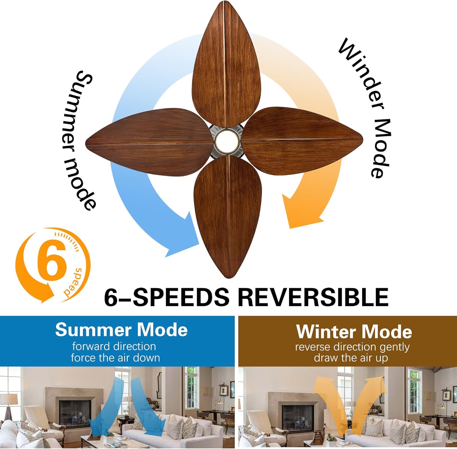 - [Quiet & High-Performance Motor]:Powered by a high-efficiency DC motor, this tropical ceiling fan operates at a near-silent level while delivering powerful airflow. With 6-speed options and forward/reverse functionality, it ensures a peaceful and comfortable living environment year-round. The reversible feature helps cool you down in summer and promotes warm air circulation in winter.