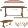 - 【Stability, Durability and Exquisite Dining Set】 Our Dining Table set Crafted from solid and engineered wood as the main material and using antique finish, this dining table set presents a kind of reverence for the original, natural and mottled beauty. All legs of this set are made of solid wood LVL which can ensure sturdy and durable. A fixed top with meticulous oblique scraping serrated print and a distinctive cross-legged trestle base gives the table a farmhouse feel.