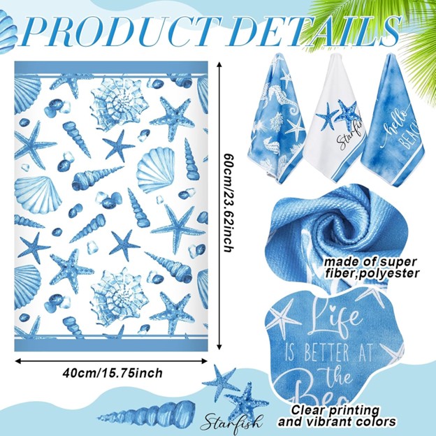 - Suitable Size: these starfish kitchen towels are about 15.8 x 23.6 inches/ 40 x 60 cm when folded, the suitable size allows you to easily hold them in your hands for housework, and you can also fold them into small pieces for easy storage