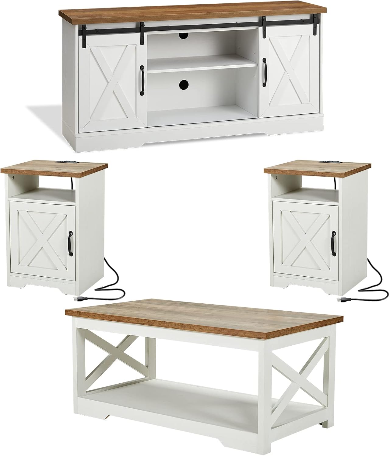 Continue shopping “AMERLIFE 4-Piece Farmhouse Table Set Includes Sliding Barn Door TV Stand, Coffee Table& Two End Tables, Side Table with Charging Station and USB Ports, for Living Room, Distressed White, 66″” has been added to your cart.