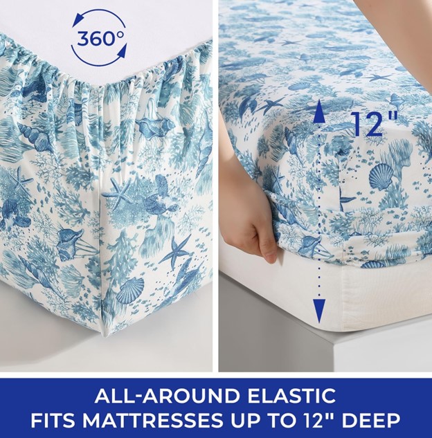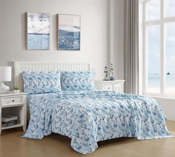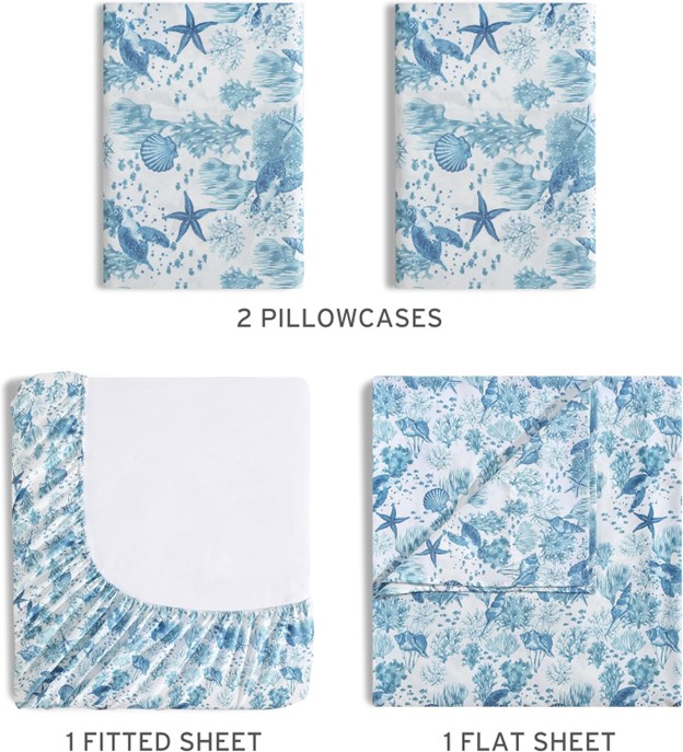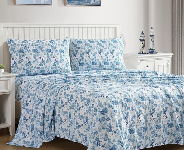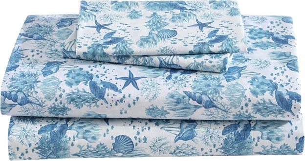 Dive into comfort with our Coastal Print Microfiber Sheet Set! Adorned with charming nautical turtles, this set brings a touch of the ocean to your bedroom. Crafted from ultra-soft microfiber, it promises a cozy night’s sleep. The 12″ deep pockets ensure a snug fit on your king-sized mattress, making bed-making a breeze. Perfect for beach lovers and anyone seeking a serene, coastal vibe. Transform your space into a tranquil retreat!