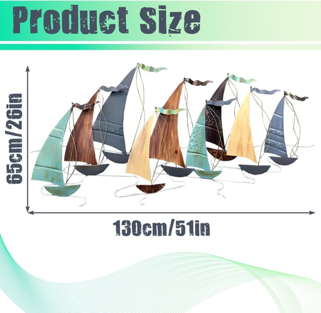 Transform your space with this stunning Large Metal Sailboat Wall Decor! Measuring an impressive 51″ x 26″, this ship wall art brings a touch of coastal charm to any room. Crafted with intricate details, it captures the essence of nautical adventures. Perfect for beach lovers, this large ship wall sculpture adds a vibrant splash of color and elegance to your decor. Let your walls sail into a world of creativity and style!
