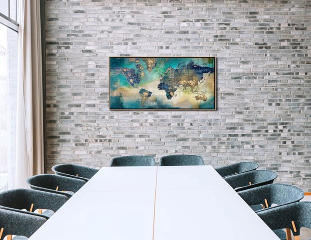 - Framed canvas wall art: World Map Wall Art Size: 24x48inch, 1 panels world map themed canvas prints, modern wall decor.
