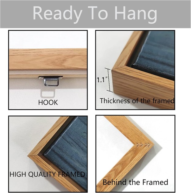 - Framed canvas wall art Easy To Hang: each panel of canvas prints already stretched on solid wooden frames, gallery wrapped, with hooks and accessories, ready to hang.