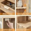 - Ample Storage Space : Our rattan makeup vanity dresser with features a storage shelf with a glass door, keeping makeup brushes and powder puff free from dust. The adjustable shelf design accommodates items of various heights, from short nail polish bottles to tall lotions. The boho vanity also includes 4 vertical drawers, making access and storage more convenient. This vanity offers plenty of storage space to meet the needs of every beautiful girl for organizing makeup and styling essentials.