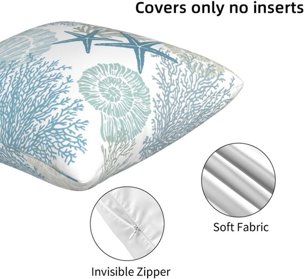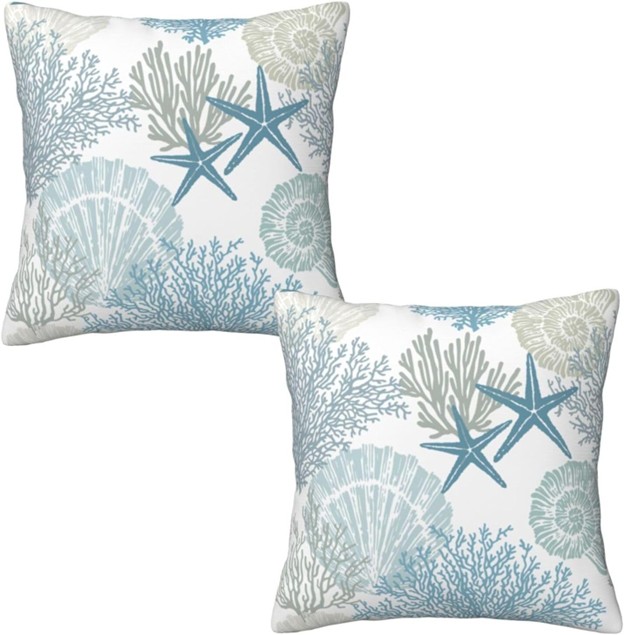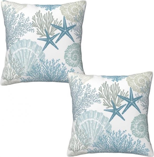 Nautical Coastal Beach Pillow Covers 18×18 Set of 2, Ocean Themed Seashell Coral Starfish Throw Pillow Covers Outdoor Decorative Pillow Case S