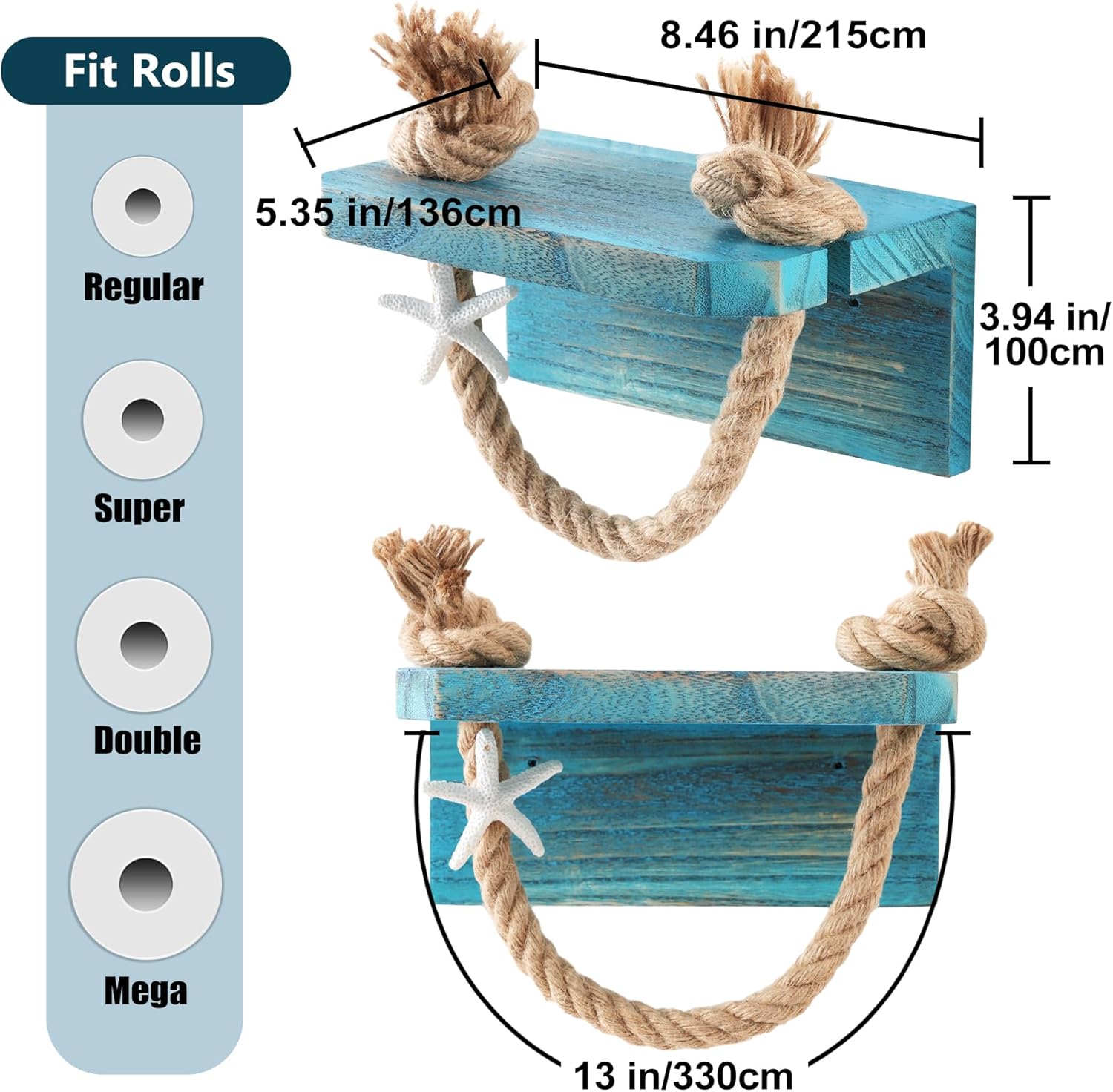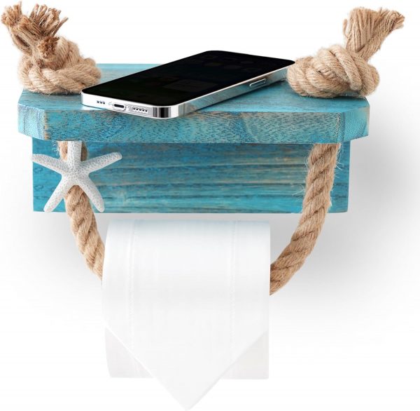 • A Creative Beach-inspired Design: Transform your space with our coastal charm sea blue toilet paper holder towel rack with shelf, infused with a vintage twist. The unique knotted rope and starfish design adds an eye-catching look, making Perfeso.L toilet paper roll holder the perfect addition to your bathroom decor!