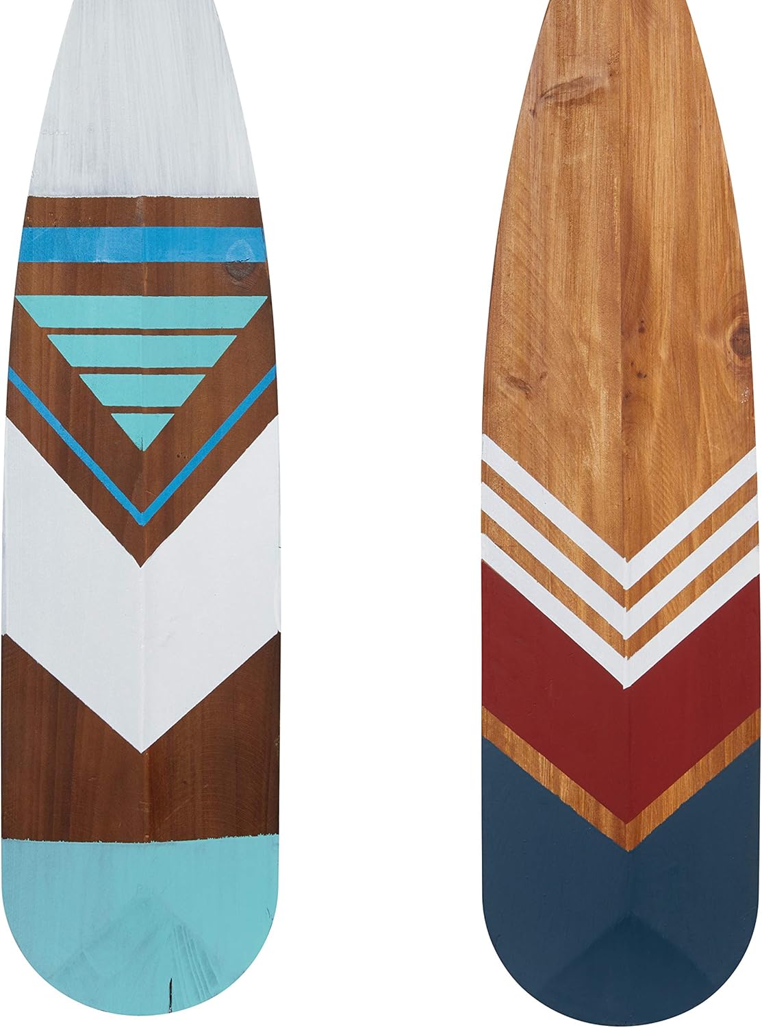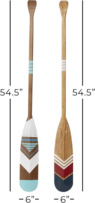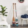 Novelty Canoe Oar Wall Sculpture with Arrow and Stripe Patterns, Set of 2