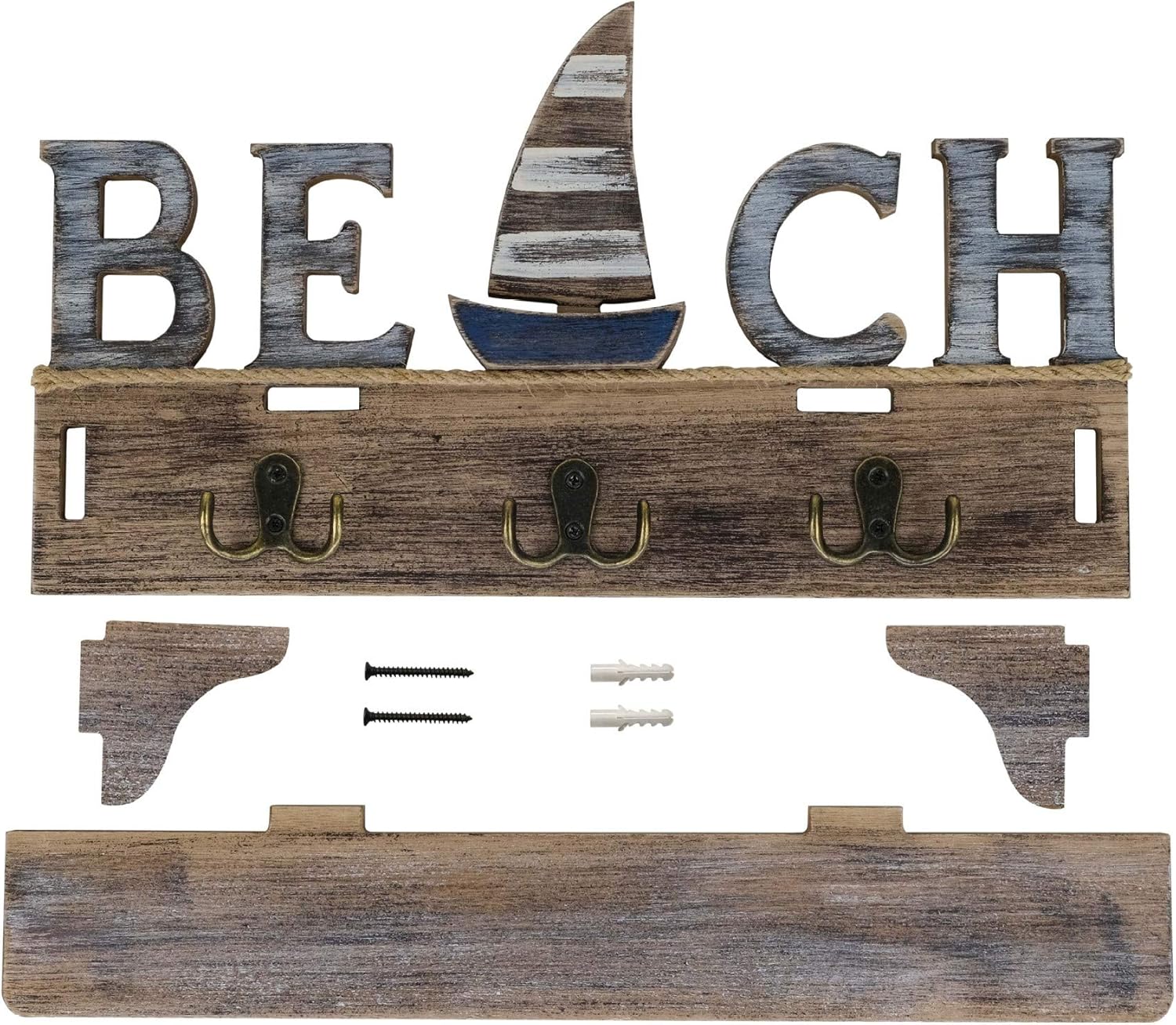 SAILINGSTORY Beach Wall Decor Nautical Decorative Coat Rack Wall Mounted Key Hook with Shelf quantity