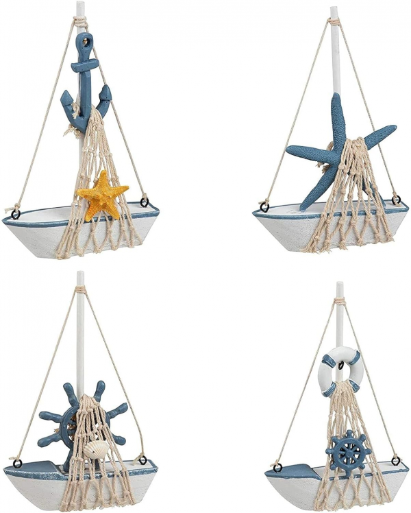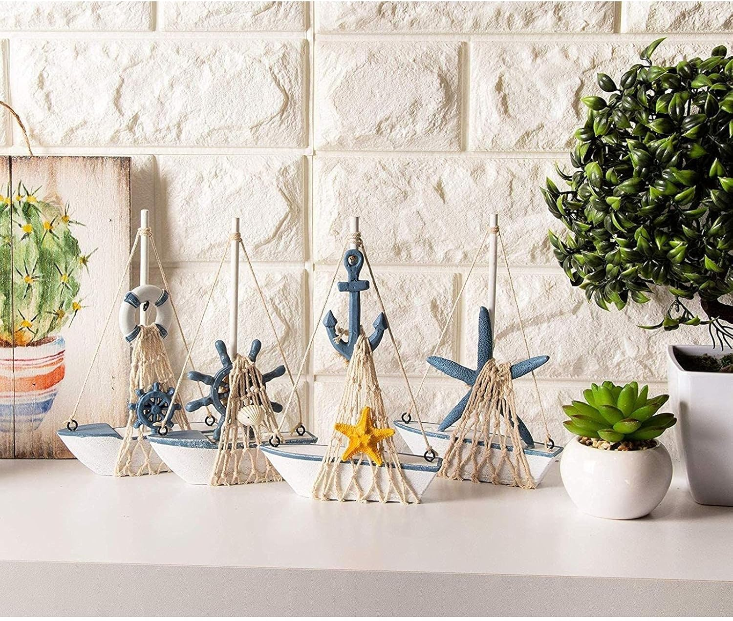- Nautical Themed Decor: This charming sailing decoration set includes 4 mini sailboat models with various designs such as fishnet, anchor, steering wheel, starfish, and lifebuoy, perfect for adding beach decorations for home and elevating your coastal decor