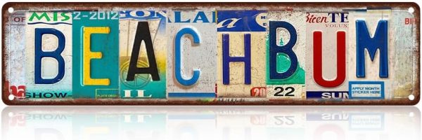 • FUN COASTAL DECOR Spells “BEACH BUM” in colorful license plate-style letters—adds a laid-back and tropical vibe to any seaside or poolside space.